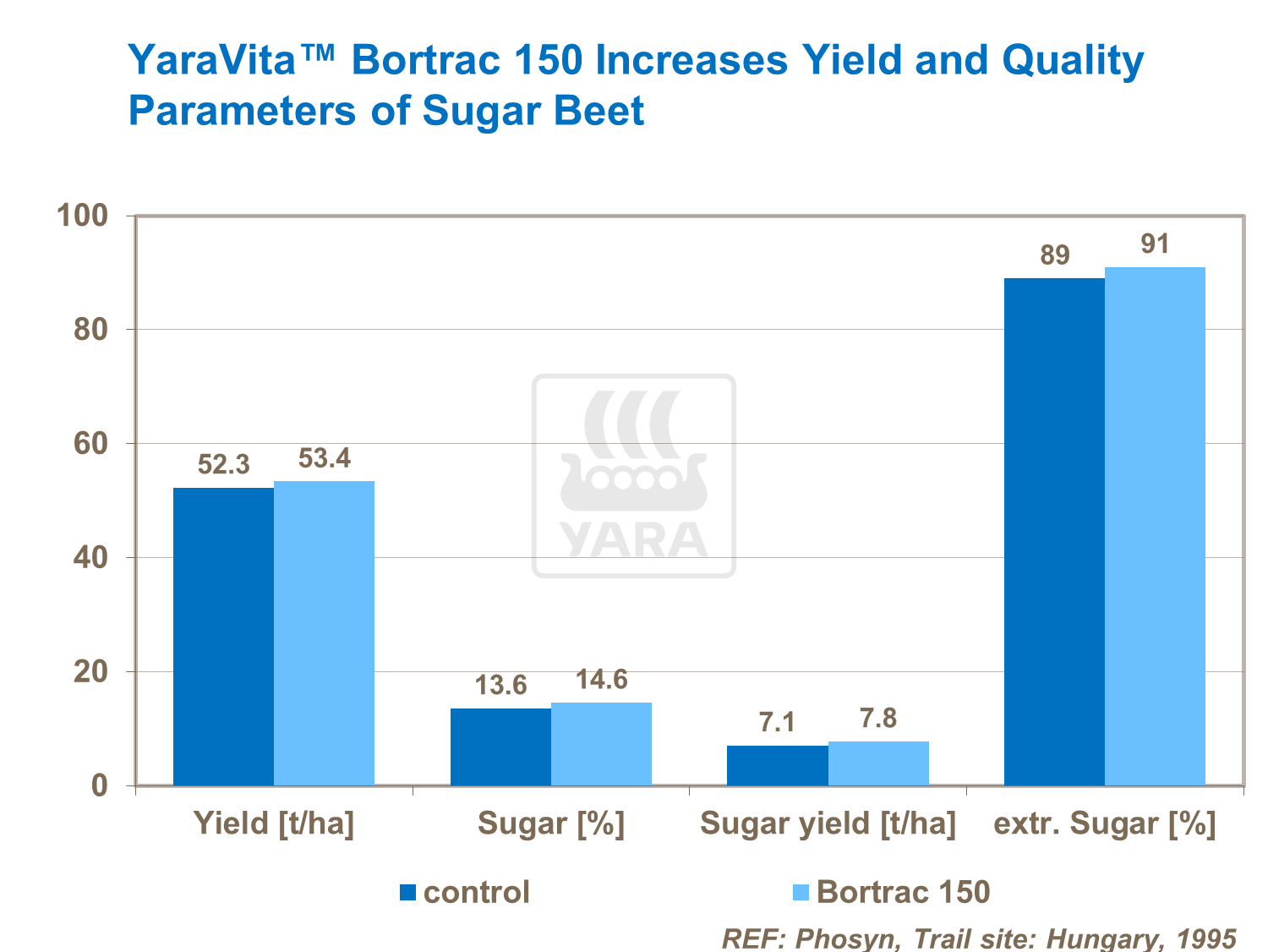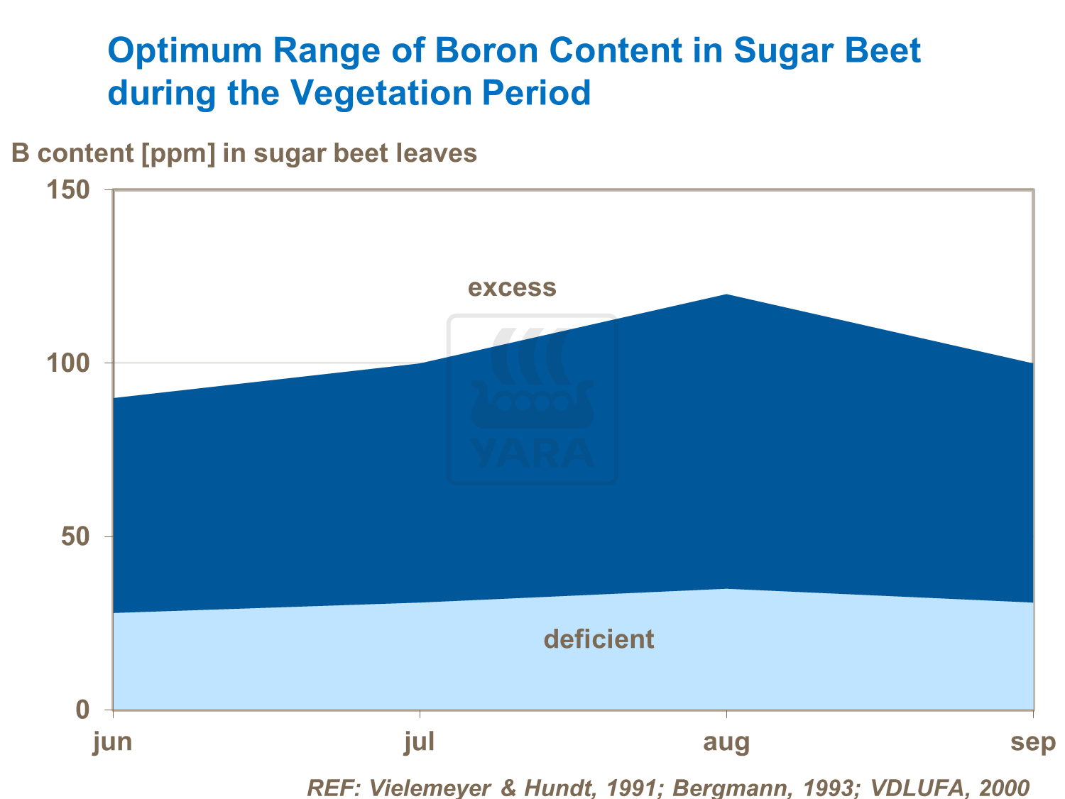 Bor jest podstawowym mikroskładnikiem wspierającym odpowiedni wzrost i rozwój roślin dwuliściennych. Duże zapotrzebowanie na ten składnik występuję w okresie szybkiego wzrostu i podziału komórkowego pełni on bowiem podstawową rolę w budowie i wzroście ścinany komórkowej. Bor jest transportowany tylko przez ksylem dlatego objawy niedoboru uwidaczniają się w najmłodszych liściach. Typowym objawem niedoboru boru w burakach są pokarbowane liście oraz spękania u nasady liści i górnej części korzenia. W dalszej kolejności części liści i korzenia stają się czarne powodem tego są zamierające komórki. Niedobory boru mogą powodować drastyczny spadek plonów buraków a także ich jakości.