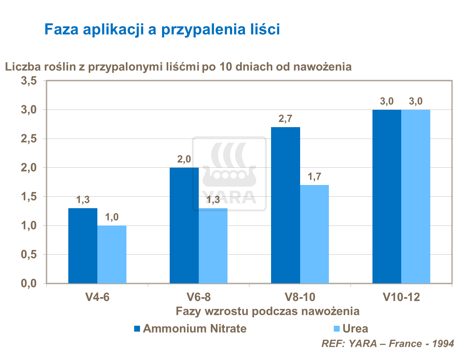 Pomimo, że efekt tego rodzaju przypaleń nie wpływa znacząco na plon, francuskie badania wskazują na fakt, że najlepiej stosować nawożenie pogłówne do fazy V6.