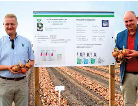 Tegoroczny sezon wegetacyjny zyskał miano ekstremalnie suchego lub afrykańskiego za sprawą niewielkiej ilości opadów oraz upałów panujących pod koniec lipca i przez cały sierpień. W takich warunkach cebula na większości pól plonowała słabo, ale wykorzystując nawadnianie niektórym plantatorom udało się osiągnąć zadowalające plony. Bardzo dobre efekty fertygacji – nawadniania i nawożenia cebuli można było zobaczyć podczas dwóch spotkań zorganizowanych 3 września w Wielkopolsce i na Kujawach, przez firmy: Bejo Zaden Poland, Yara Poland, Milex Systemy Nawadniania i Bayer CropScience. Pierwsze zlokalizowane było w gospodarstwie Adama Pawlaka w Szemborowie k. Strzałkowa, a drugie, w tym samym dniu, u Romana Wacha w Kościelcu k. Inowrocławia. W obu gospodarstwach można było zobaczyć kolekcję ponad 20 odmian cebuli z oferty firmy Bejo Zaden. Do produkcji których w programie nawożenia w Szemborowie przedsiewnie zastosowano m.in.: PatentKali, fosforan amonu oraz saletrzak, pogłównie Unika Calcium, a dolistnie nawozy Yara z serii Kristalon, a także YaraVita Actisil oraz KristaLeaf Foto.