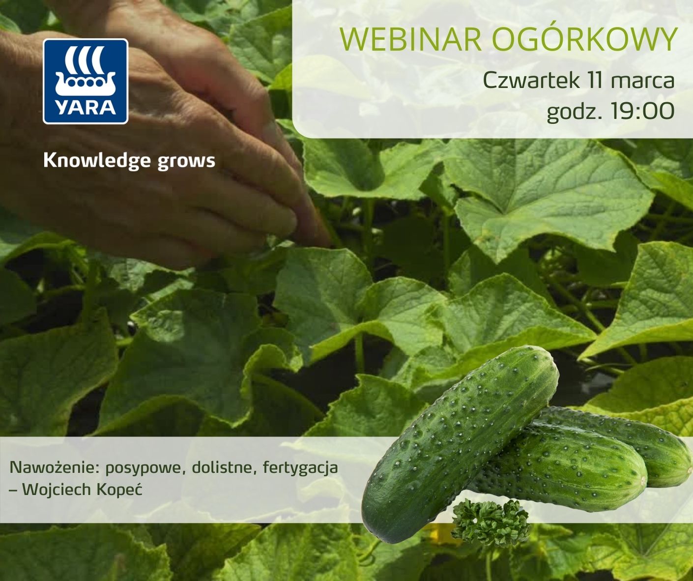 11 marca odbył się webinar ogórkowy, organizowany przez portal warzywapolowe.pl. Nasz agronom - Wojciech Kopeć, przedstawił temat nawożenia posypowego, dolistnego oraz fertygacji ogórka polowego.
