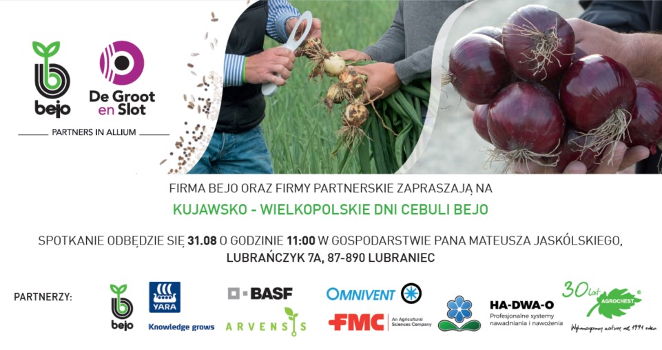 Serdecznie zapraszamy Państwa na Spotkanie Cebulowe, które odbędzie się we wtorek, 31 sierpnia, o godzinie 11:00. Na swoich polach gościć nas będzie gospodarz - Pan Mateusz Jaskólski.
