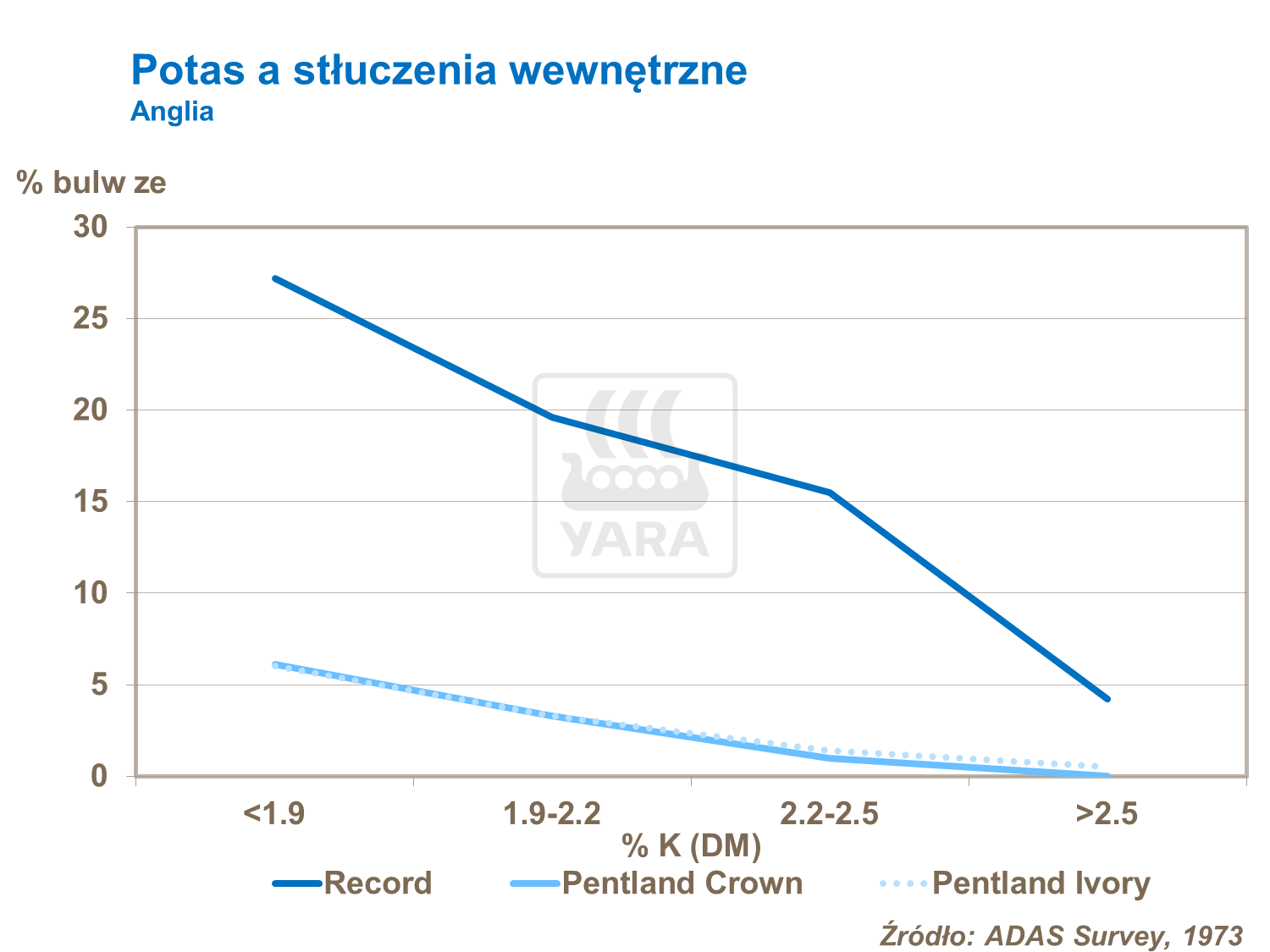Doświadczenia z Wielkiej Brytanii wskazują na wpływ dawki i formy potasu na stłuczenia wewnętrzne niezależnie od odmian.